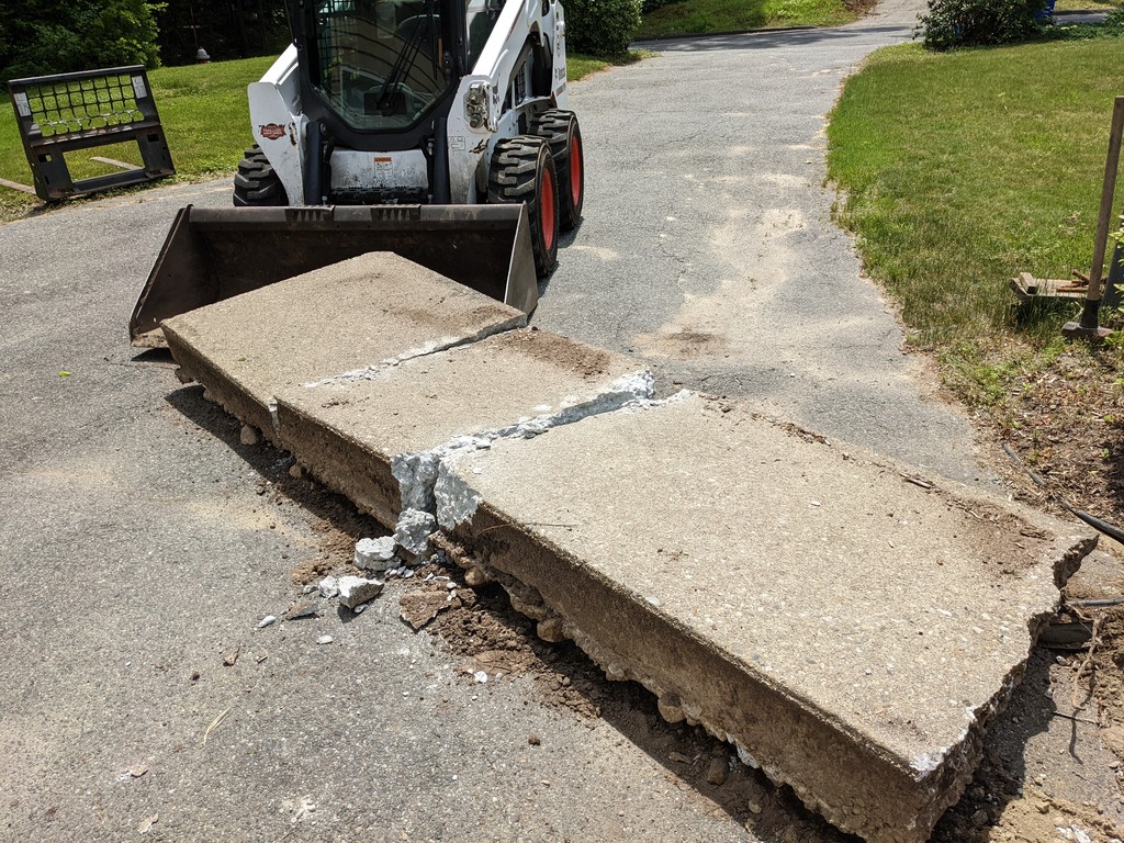 Follow-up: He’s here. No problem pulling out the 6-inch slab and breaking it up with an 8 lb. sledge.