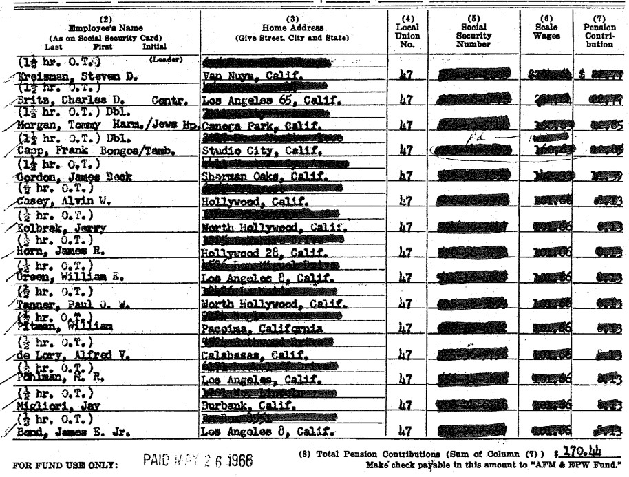 Thanks to those damn bureaucrats at the American Federation of Musicians, with their blasted rules and forms, we can see where and when Pitman worked on “Good Vibrations”.