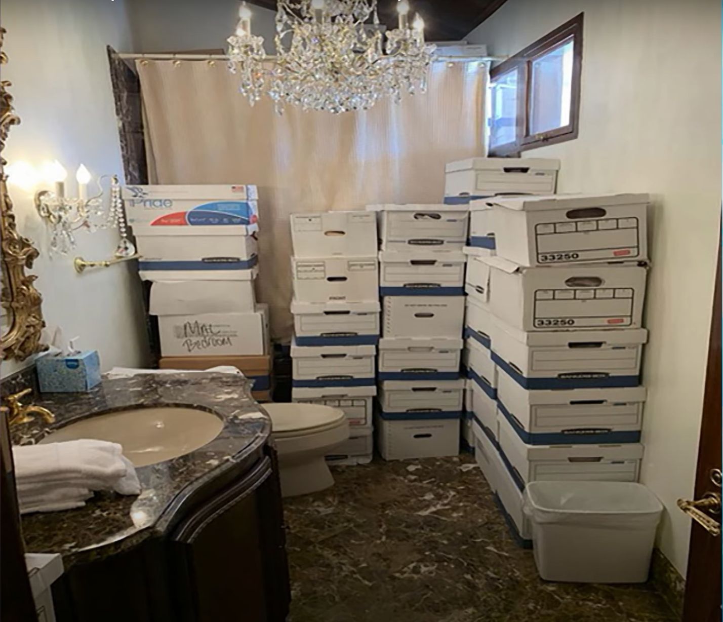 I’m curious about something in that famous FBI photo of the Mar-a-Lago bathroom with the government document boxes.