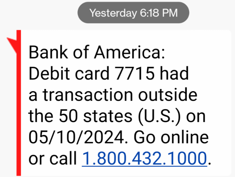 Of course it was hacked, and of course the card’s data was skimmed and stolen. Or, perhaps, a WiFi webcam had been planted in a strategic spot. Literally the only use of my debit card over the past year was one time at that ATM. Yesterday, my phone buzzed with this message.