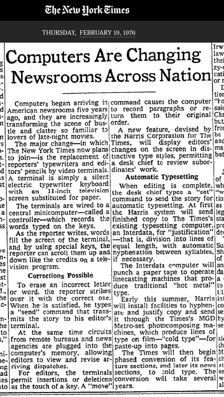 I used a computer teletype keyboard in a college math class, but what I consider to be my first exposure to computer terminal keyboards was at the newspaper where I worked after leaving radio. (That was also when I first saw a markup language and how it formatted text.) The keys had a very different feel from the clunky typewriter at the station. I was amused by the system being from Harris, the parent company of Gates, that made the transmitter and mixing console at the radio station.