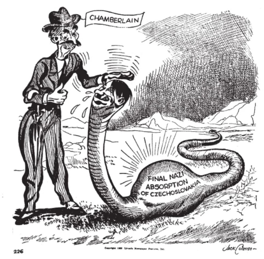 How is it we’re dealing from a position of strength, when Hegseth is preemptively announcing Ukraine’s surrender to Pukey Putin? History repeats itself, with Chamberlain agreeing that Hitler could have the Sudetenland, in the interest of “peace for our time.”