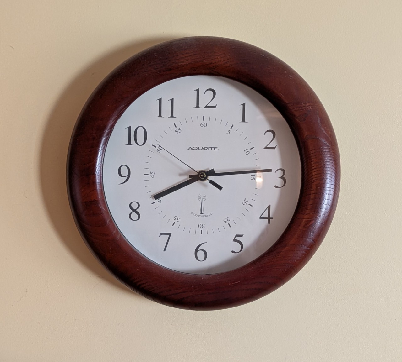 My radio-controlled Acu-Rite wall clock is supposed to be synchronized with the NIST Atomic Clock.