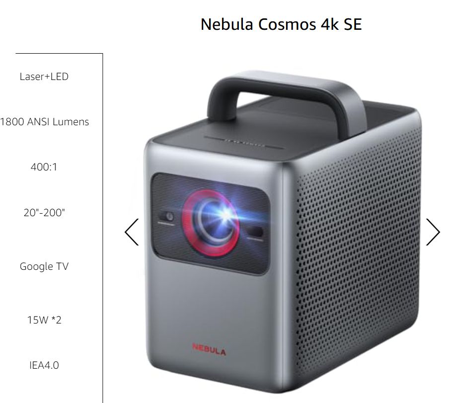 Two years ago I bought a similar product, the Epson Mini EF12, a 3LCD projector. Techmoan says the Nebula’s black level can’t compare with an OLED TV, but nothing can except for a still-working plasma TV. The native contrast for an inexpensive 3LCD projector like the EF12 may be only 400:1, whereas a comparable triple laser DLP could be 3500:1. (The ratings for JVC D-ILA high-end projectors start at 40,000:1.)*