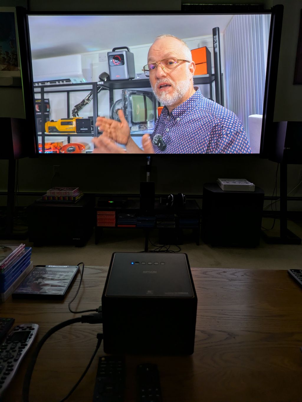 The EF12 is my projector for casual viewing in the Pratt Cave. It isn’t suitable for dark scenes, because they appear very washed out. Cartoons and brightly lit news broadcasts look quite good, as do many YouTube videos, like the ones posted by Techmoan.