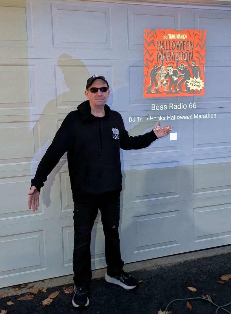 Yours truly in Boss Radio 66 attire (thank you Debbie and Tom!), getting ready for what turned out to be a very successful Halloween evening.