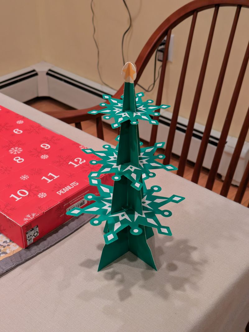 The 60th anniversary of A Charlie Brown Christmas is next Tuesday, the 9th. To celebrate, my twinster Jean sent me this fun and nifty Peanuts tabletop mobile, counting down “the 12 days leading up to Christmas.”
