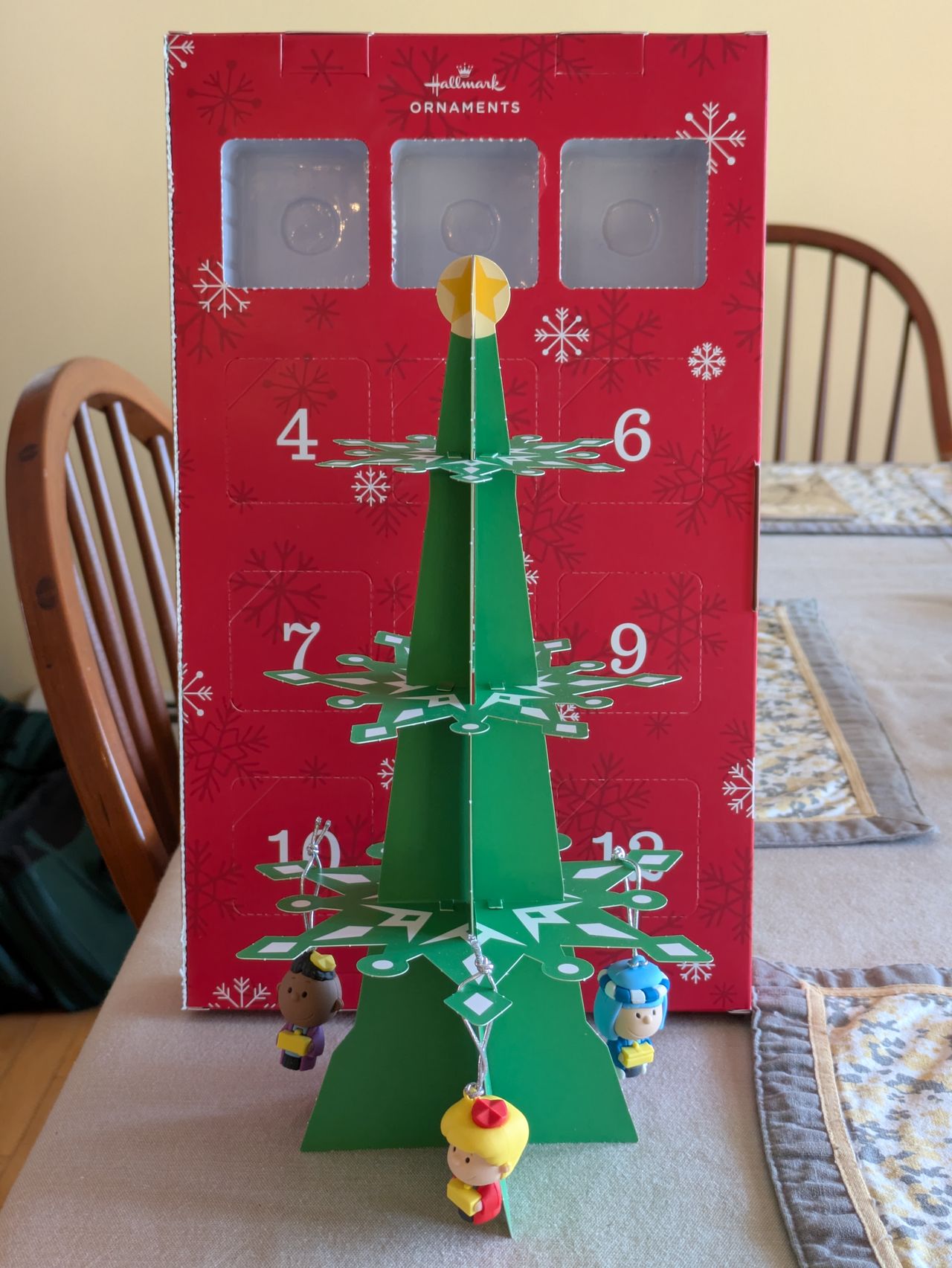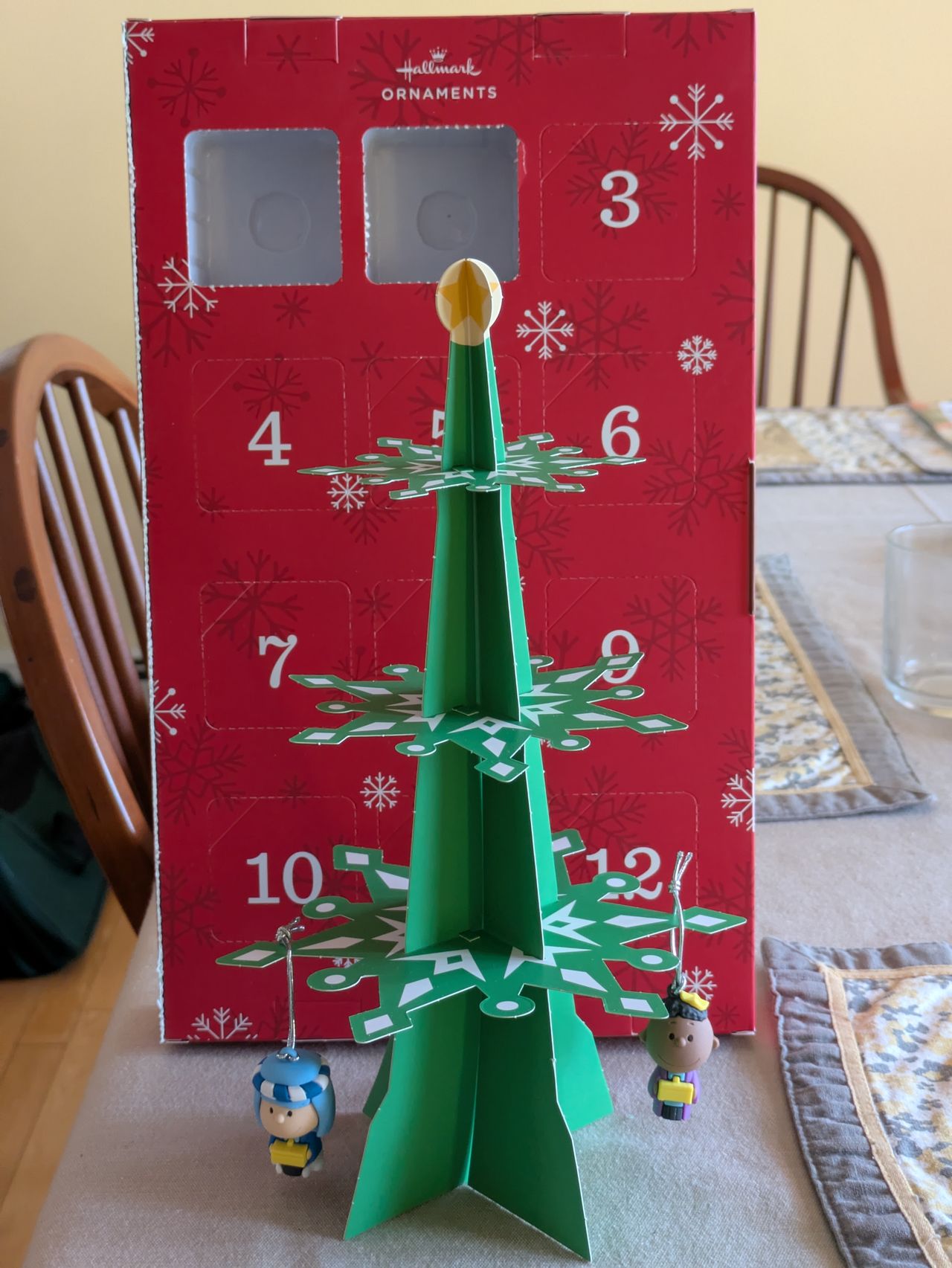The 60th anniversary of A Charlie Brown Christmas is next Tuesday, the 9th. To celebrate, my twinster Jean sent me this fun and nifty Peanuts tabletop mobile, counting down “the 12 days leading up to Christmas.”