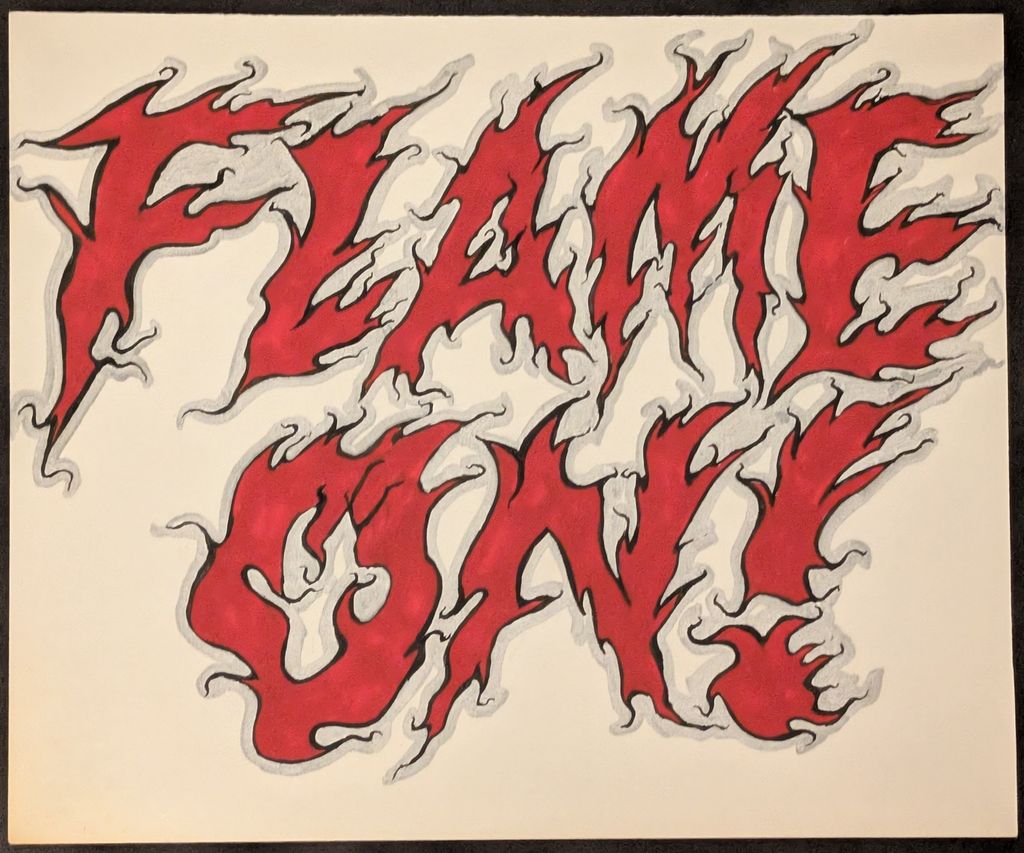 On Sunday, Denro and I were at the Albany Comic Con. It’s a small, one-day show that’s devoted to comic books, which is a rarity these days. I bought this groovy FLAME ON! logo from comic book letterer Janice Chiang. It would make a good tattoo, not that I’d ever have any interest in getting one.